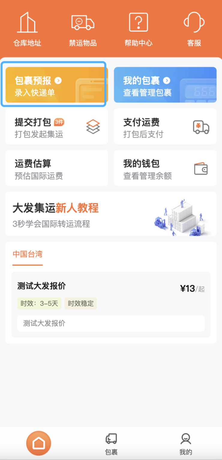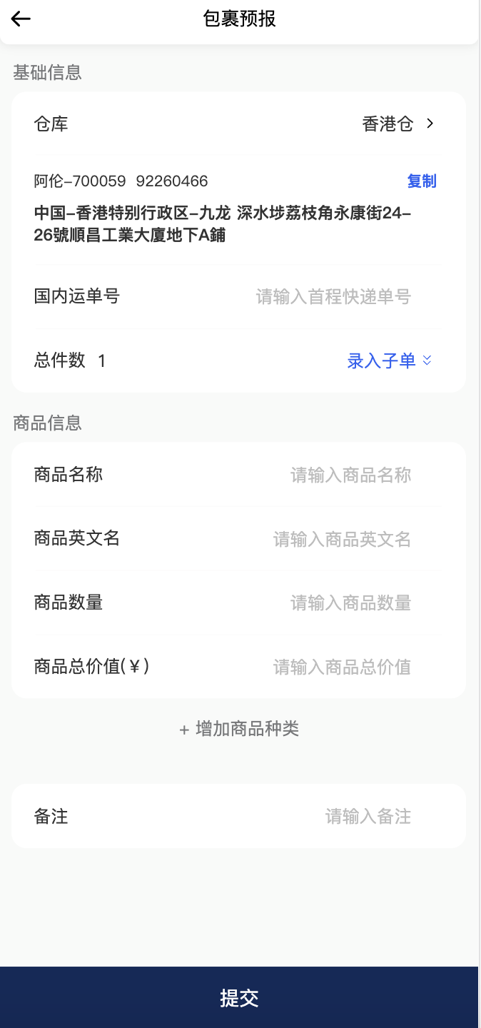 点击我要预报,填写快递单号的信息等等,点击提交预报
