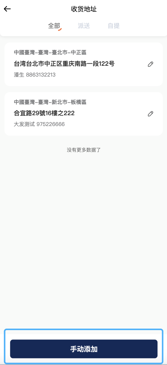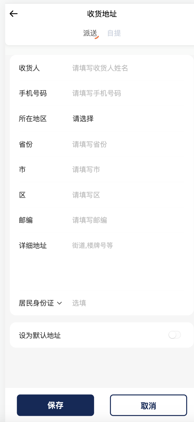 首页-收货地址-新增收货地址,填写地址信息然后保存